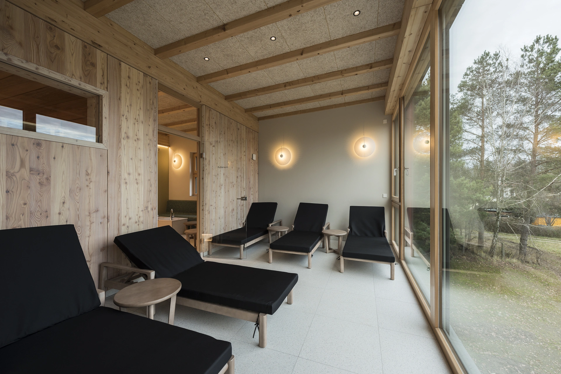 Finnische Sauna mit Seeblick, Dampfsauna, Ruheraum, Saunagarten mit Whirlpool – zu jeder Jahreszeit ein Ort zum Durchatmen. Badestelle und Steg (für Kajak, Kanu, SUP) in ca. 200 m Entfernung.
